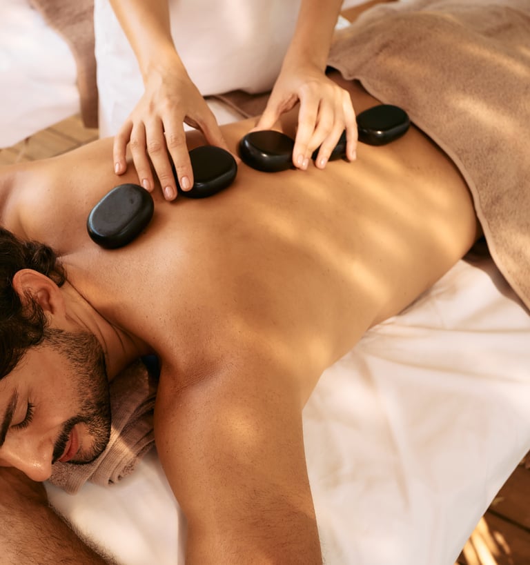 Heated stones melt deep muscle tension and ease stiffness.